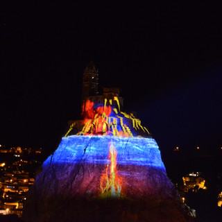 Les illuminations du Puy-en-Velay (22/08/2017) : le Théâtre, l'Hôtel de Ville, la Cathédrale Notre-Dame, la Chapelle Saint-Alexis et le Rocher Saint-Michel d'Aiguilhe. Une belle soirée d'été avec Auze la culture.