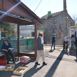 Avec le « Collectif de la cabine », nous avons aménagé l’ancienne cabine téléphonique de Recharinges en boîte à livres ! Vitres nettoyées, sol en lames bois, étagères en bois massif, affichettes explicatives et surtout de nombreux livres et revues donnés pour être lus et/ou échangés. Tout est en place même la place … du village où les poubelles ont été rangées et le sol balayé tout autour de ce nouveau micro-espace de culture !