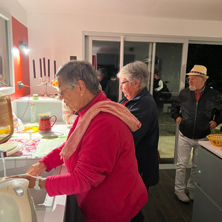 Bravo à Armand et Marie-Jo pour le couscous royal marocain, agneau, poulet, merguez, courgettes, carottes, navets, oignons, tomates, raisins, pois chiches, raz-el-hanout et cumin, et j’en oublie !
